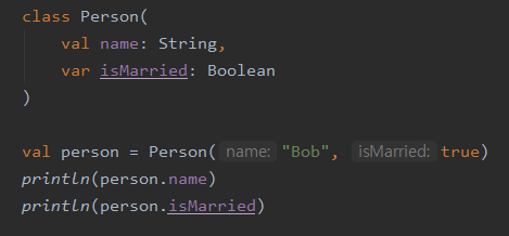 위의 코드에서 name은 읽기 전용 프로퍼티(게터)이며, isMarried는 변경 가능 프로퍼티(게터+세터)임.