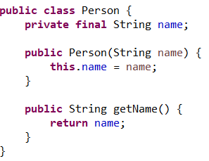 위의 코드에서 필드(여기에서는 name)의 갯수가 늘어나면 생성자인 Person(String name)의 내부에서 파라미터를 이름이 같은 필드에 대입하는 대입문의 수가 늘어나게 됨.