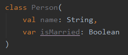 클래스에서 프로퍼티를 선언하기 위해서는 위의 코드와 같이 val이나 var를 사용하면 됨.