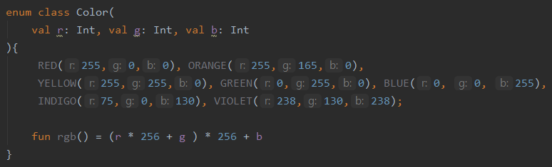 - fun rgb(): enum 클래스 안에 정의한 메소드