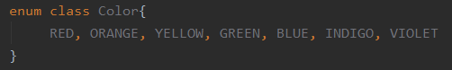 * 위 코드에서 중요한 점은 enum 클래스 각 상수를 지정할 때는 반드시 그 상수에 해당하는 프로퍼티의 값을 지정해야 함. (여기서 상수는 RED, ORANGE 등 임)