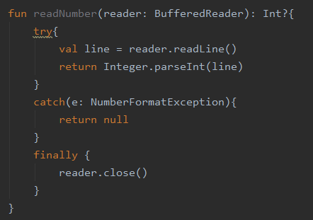 아래의 코드는 파일에서 각 줄을 읽어 변환해 주는 기능을 하는 코드임. 하지만 이 때 올바른 형태가 아니면 null을 반환함.