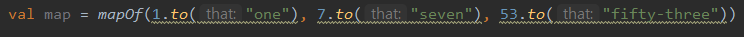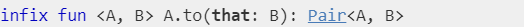 - 위의 코드는 중위 호출 방식을 이용해서 확장함수 to를 호출한 것임
