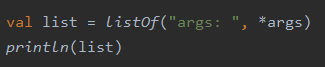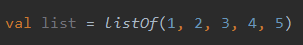 여기서 리스트 생성 함수(listOf)가 가변 인자 함수임. (리스트를 생성할 때 원소의 갯수를 원하는 만큼 전달할 수 있기 때문)