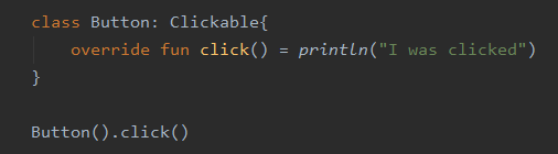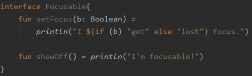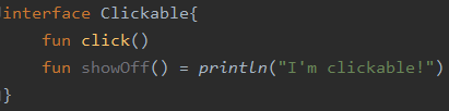 ☞ 이 경우 자바에서는 메소드 앞에 default를 붙여야 하지만 코틀린에서는 그냥 메소드 본문을 쓰면 됨.