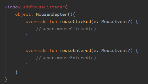 - object: MouseAdapter: MouseAdapter를 확장하는 익명 클래스를 선언
