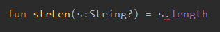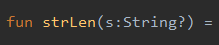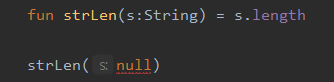 - 위의 코드에서 strLen에 null이거나 널이 될 수 있는 인자를 넘기는 것은 금지이며 만약 이러한 값을 넘기게 되면 컴파일 시 오류가 발생함. (바로 아래에 이 결과를 확인할 수 있게끔 예시를 적어둠)