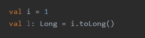 - 위의 코드 처럼 코틀린은 모든 원시 타입에 대한 변환 함수를 제공함 (Boolean 제외)