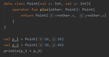 ☞ 이처럼 operator 변경자를 추가해서 plus 함수를 선언하고 나면 + 기호로 두 Point 객체를 더할 수 있음.