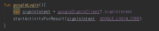 startActivityForResult(signInIntent, GOOGLE_LOGIN_CODE)