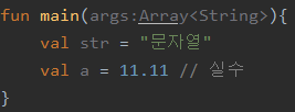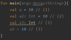 특징: 코틀린에서 변수의 타입 지정을 생략할 수 있음.