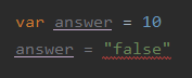 var 키워드를 사용하면 변수의 값을 변경하는 것은 가능함. 그러나 변수의 타입은 고정되어있음.