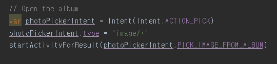 - startActivityForResult를 이용해서 선택한 이미지 정보가 onActivityResult에 전달되도록 함