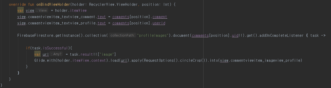Glide.with(holder.itemView.context).load(url).apply(RequestOptions().circleCrop()).into(view.commentviewitem_imageview_profile)