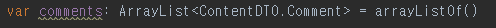 var comments: ArrayList<ContentDTO.Comment> = arrayListOf()