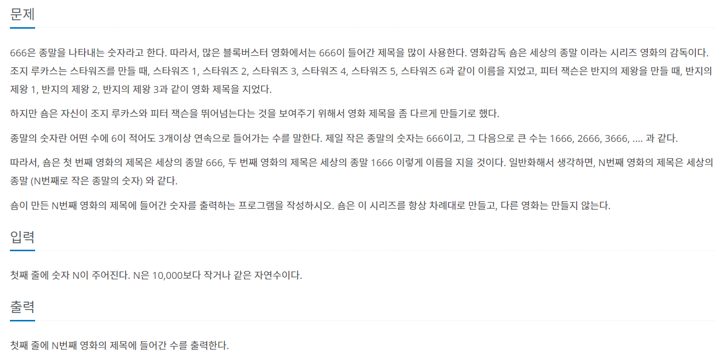 [백준 1436] [브루트포스] [JAVA] 영화감독 숌 본문