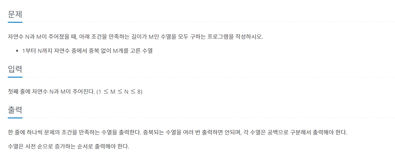 [백준 15649] [백트래킹] [JAVA] N과M(1) 본문
