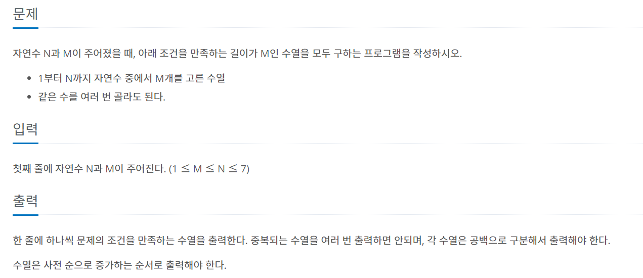 [백준 15651] [백트래킹] [JAVA] N과M(3) 본문