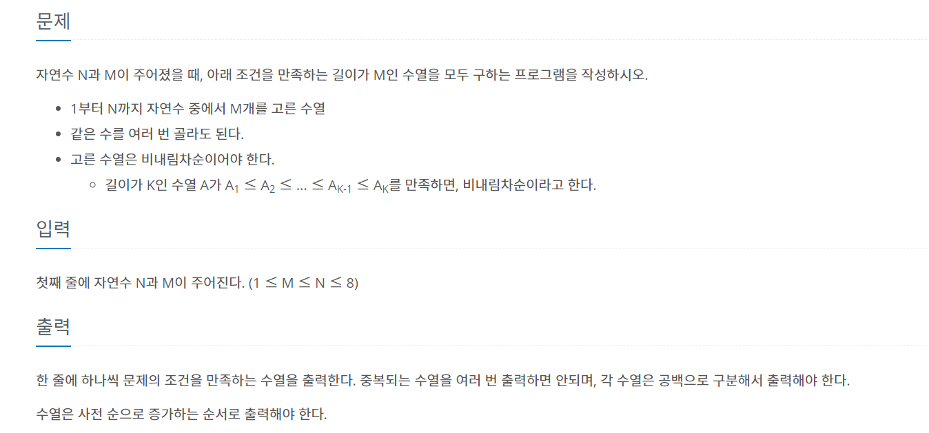 [백준 15652번] [백트래킹] [JAVA] N과M(4) 본문